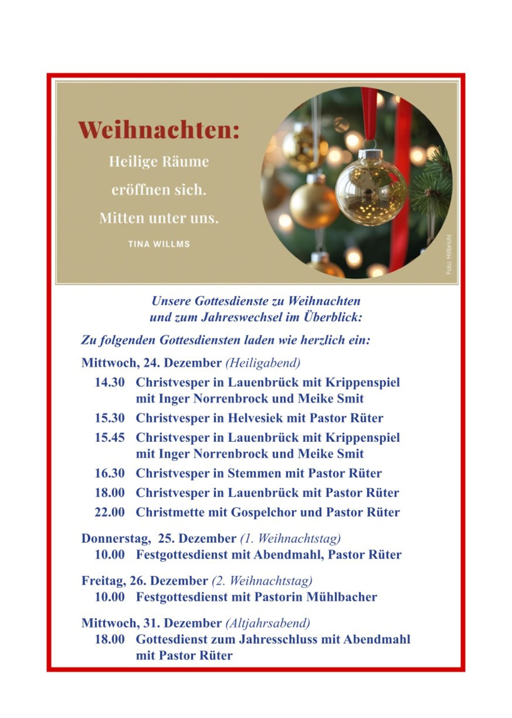 Herzliche Einladung zu unseren besonderen Gottesdiensten